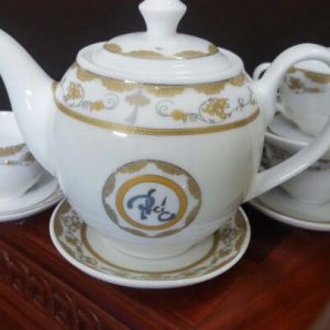 Ấm chén sứ men xanh họa tiết vàng in logoXem Thêm